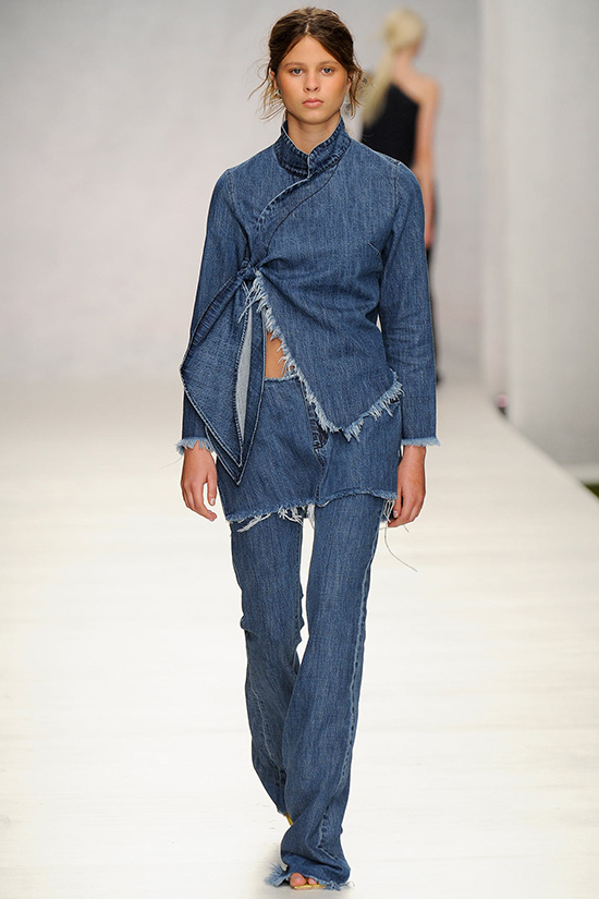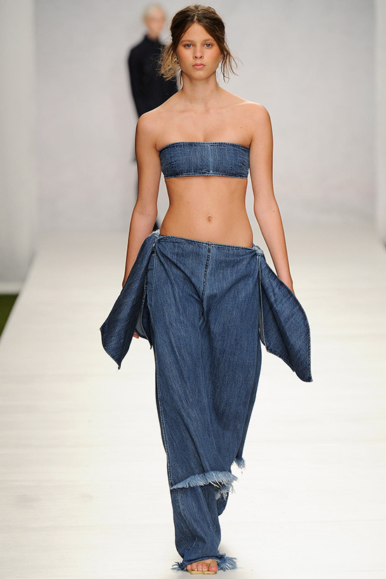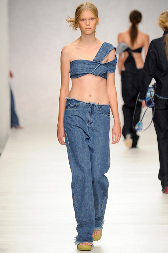 Детали: джинсы, сидящие низко на бедрах, необработанные края, очень короткие топики, полупрозрачные платья поверх джинсов, многослойность, минимализм.