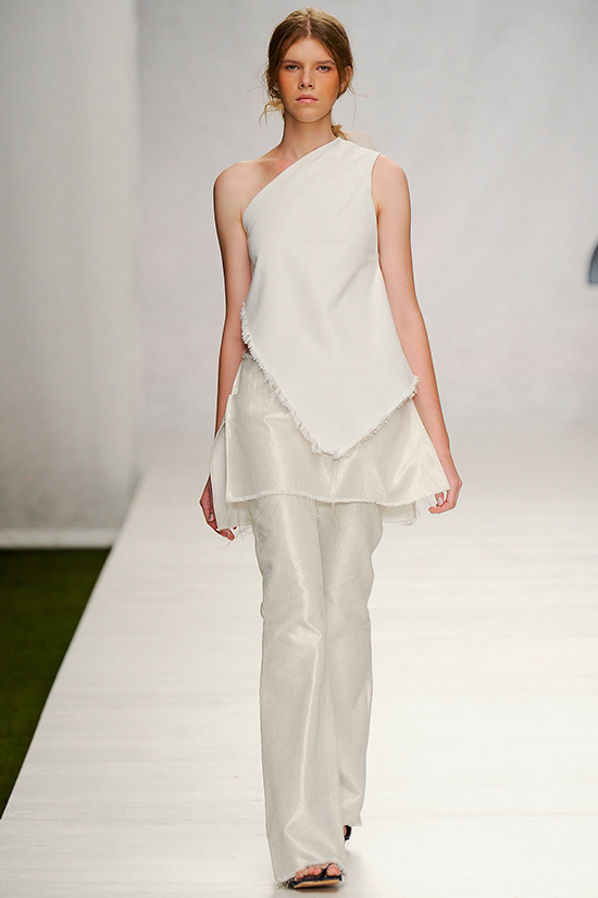 Мнение: "Становится понятно, чего ожидать от шоу Marios Schwab; идеально выстроенный и интеллигентно поданный образ, чрезмерно чувственный, но при этом лишенный неприличных, неопрятных и дрянных коннотаций, которые сразу появились бы, если бы образ составлял не такой талантливый человек, как Мариос". Марк Холгейт, Vogue.com