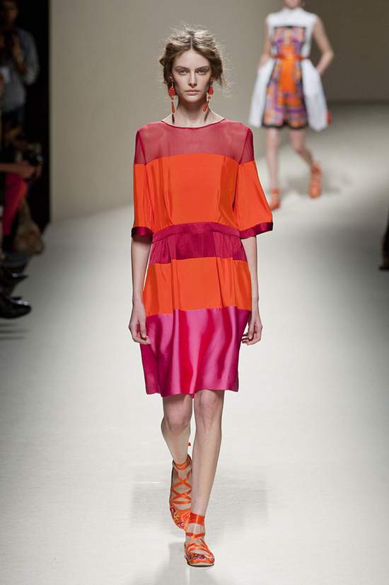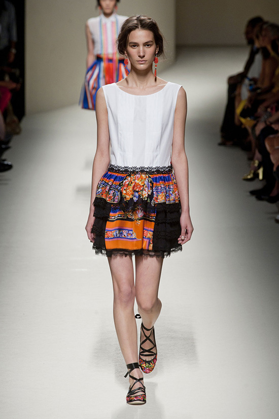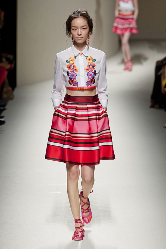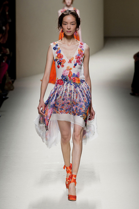 Мнение: "При этом Ферретти удалось не свернуть в сторону национального костюма. Благодаря легкости тканей и современности форм — бюстгальтеров и коротких коктейльных платьев — коллекция "стояла" полностью на ее территории. И не выходила за рамки того стиля, который так нравится женщинам". Эмили Хольт, Vogue.com