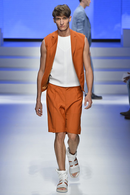 Милан в этом сезоне особенно интересуется спортом: все-таки самый популярный силуэт — "скейтерский", с широкими спортивными шортами и простой рубашкой. Креативный директор Массимилиано Джорнетти оказался в самом центре событий, показав коллекцию обновленной униформы для стильных итальянских мужчин. Затянутые на талии ветровки, брюки с манжетами, яркие жакеты все с теми же удлиненными шортами, сандалии — и все это в великолепной горчично-оранжево-зеленой цветовой гамме. "Эта коллекция была безукоризненно продумана, но пока непонятно, понравятся ли спортивные мотивы утонченному клиенту Ferragamo," — так прокомментировали показ на WWD. А мы уверены, что вариант Джорнетти — элегантнее некуда и не понравиться просто не может.