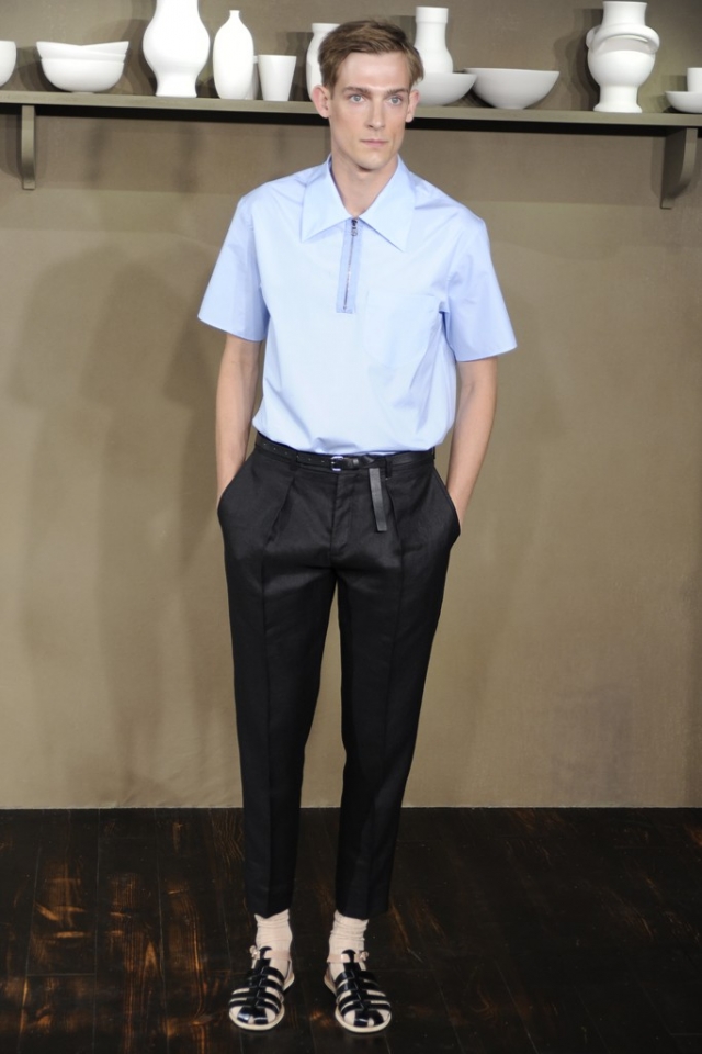 Мужскую коллекцию Carven на Women's Wear Daily назвали "художник на французской Ривьере". И правда, укороченные брюки, шорты-бермуды и майки-поло в сочетании с панамой так ярко могли носить только представители творческой профессии в далеких 1950-х. Расслабленный, комфортный, при этом нескучный и небанальный стиль — такие коллекции умеют делать только в Париже.