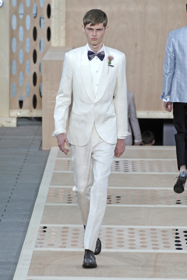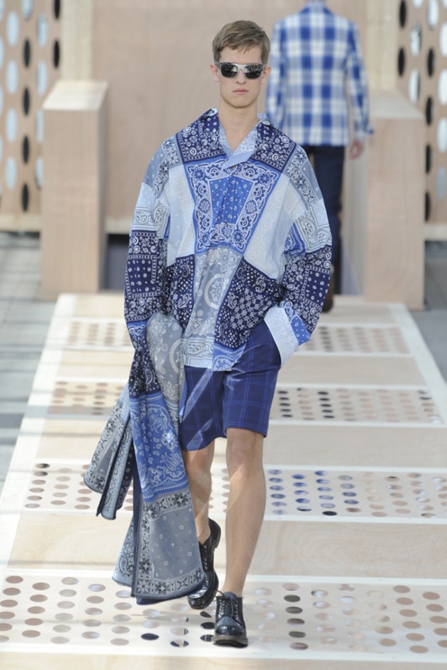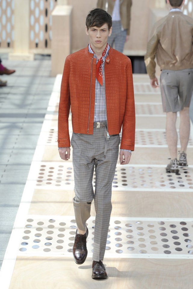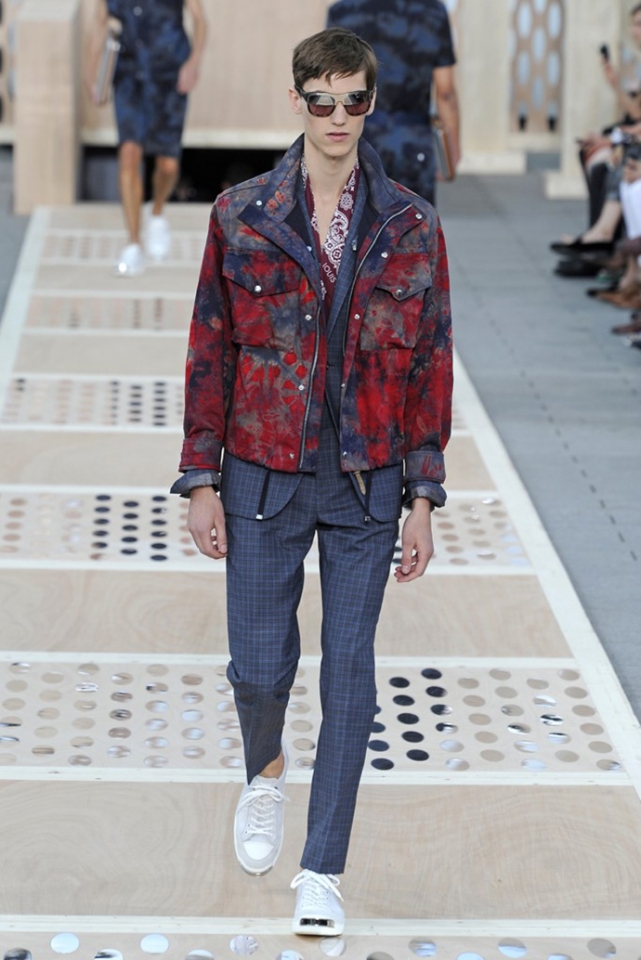 Дизайнер мужской линии Louis Vuitton посвятил весенне-летнюю коллекцию Северной Америке с ее дорогими университетами и хиппи, рейнджерами и звездами телеэкранов. Показ начался с клетчатых костюмов и шейных платков, как у ковбоев с Дикого Запада, и продолжился кожаными жакетами и растянутыми джемперами. Как написали на WWD, "ак роскошно могут делать только в Louis Vuitton": объемные куртки с накладными карманами были вручную окрашены на японских фабриках, "университетские" бомберы сшили из шелка, который обычно идет на кимоно, а жакеты с покатыми плечами сделали из матовой крокодиловой кожи, которая поднимет стоимость вещи до шестизначного числа. При этом функциональности и практичности никто не отменял: куртки с принтами двусторонние: если запачкаются, их можно вывернуть наизнанку, а с рюкзаками из кожи можно ходить в походы: они прочные, вместительные и стильные.