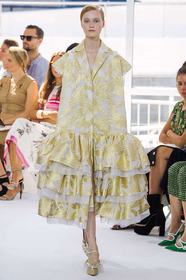 Удивительным образом даже новые дизайнеры, приходящие в старые (по американским меркам) дома, не только не приносят ничего нового, но оказываются даже консервативнее самих основателей. Ровно такая история произошла с Oscar de la Renta: если при жизни самого Оскара де ла Ренты у него появлялись интересные формы и вообще неожиданные вещи (как те же сложнодрапированные костюмы с островерхими шляпами, которые были показаны в коллекции времен их дружбы с Джоном Гальяно), то сейчас Питер Коппинг делает вещи, глядя на которые, боюсь, зевают даже постоянные клиентки марки с Парк-авеню. Если Оскар де ла Рента был консервативен, то Питер Коппинг оказался просто убийственно скучным.