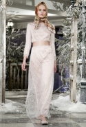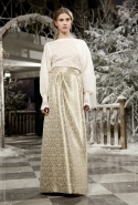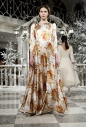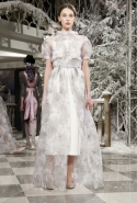 В новой коллекции Анастасия Романцова представила героиню романа Бориса Пастернака "Доктор Живаго" Лару в образе Снегурочки. У дизайнера получился сборный образ загадочной русской девушки, завораживающий своей женственностью, красотой и изяществом. Ключевое определение тут, конечно, — русской. Оренбургские платки, натуральный мех, цветочные узоры и косынки — все то, что так любят иностранцы в русских образах, и, что последнее время снова становится остро актуальным на родине.