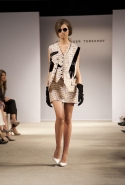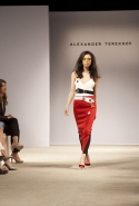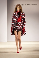 Коллекции Александра Терехова всегда характеризует обширность задействованных в них тематик: в прошлом сезоне это были усыпанные гвоздикой, "деревенские" сарафаны из хлопка и кокетливые платья в крупный горох, а сезоном раньше — образ актрисы и иконы 50-х Грейс Келли.