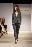 Выбор дизайнера пал на сюрреализм: шелковые платья были расписаны текстом из романа Михаила Булгакова "Мастер и Маргарита", а нашитые на жакеты изображения кистей рук вызывали в памяти творения Эльзы Скьяпарелли. Пожалуй, с одной только разницей, что у Эльзы Скьяпарелли сюрреализм был чистым и неразбавленным, поддержанным Сальвадором Дали и Жаном Кокто, а у Александра Терехова — молодежным, смешанным со спортивной уличной модой. Ее посланники — шелковые бомберы с трикотажными манжетами и толстовки из жаккарда, которые легко можно набросить на длинное вечернее платье, если на улице вдруг похолодает.