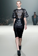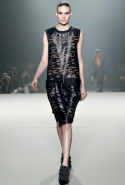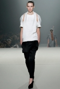 Его трудно "упрекнуть" в излишней оригинальности — новая коллекция Александра Вонга напомнила попурри из фирменных тем дизайнера (комбинированные модели на стыке разных предметов, сочетание различных фактур, объемы, мужественный жесткий крой и легкие драпировки, рафинированная спортивная эстетика). С другой стороны, молодому американцу сейчас не до экспериментов: в качестве назначенного креативного директора дома Balenciaga он должен прежде всего доказывать, что способен к качественному росту.