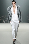 Для вечера дизайнер предложил модели, которые можно было бы считать очень остроумным "комментарием" на тему американского шика и его бессменных клише. Топы и брюки с драпировками были дополнены мохнатыми жакетами. Кульминация темы – белый топ и брюки из плотного атласа и мохнатый жакет-накидка в роли роскошного полушубка (Бьянка Джаггер на вечеринке в Studio 54, но только без пафоса и в более доступном варианте). Что-то новое появилось у Александра Вонга — он остался дерзким, смелым, молодым и, кажется, подобрался к рецепту того, как быть сложным и одновременно простым, создавать хиты, которые еще и можно продавать.