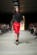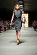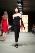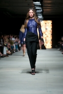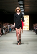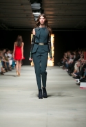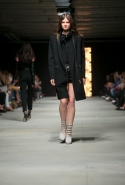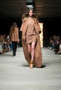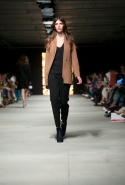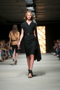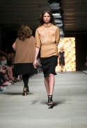 Одним из основных приемов в коллекции является ассиметрия, которая заметна по крою комбинезонов и платьев. Также используются элементы классического мужского костюма. В коллекции преобладают натуральные ткани: тончайший кашемир, креп разных фактур, твид и матовая кожа.