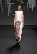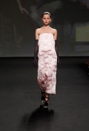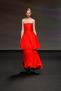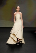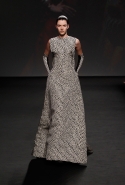 Были и совершенно радикальные вещи, со сложными драпировками и вставками, как, например, платье из двух сложнопереплетенных полотен ткани, алого и фуксии в клетку "куриная лапка", перехваченного тонким черным поясом, — и на тему "штор" тут же все бросились острить в твиттере и фейсбуке. Были и такие, которые напоминали о выпускных коллекциях в дизайнерских школах, — как, например, белое шелковое платье с неровным трехслойным подолом, к одному плечу которого было словно пристегнуто с помощью множества пуговиц серое фланелевое. И оно смотрелось подчеркнуто странно в одной коллекции с роскошным буржуазным черным пальто из каракульчи с лисьим боа. Но каждая была подчеркнуто, даже избыточно, сложной — прихотливого кроя, составленной из множества деталей, с причудливой комбинацией фактур, с подчеркнуто продуманной спиной. Убедительное и вместе с тем очень современное воплощение самой идеи кутюра — сложной и кропотливой ручной работы.