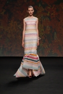 В целом все это — многослойность, сложные драпировки, неровные подолы хвостами, неоновый блеск, нечто, связанное крючком, и вариации "куриной лапки" (оба эти элемента мы уже видели в последнем prêt-à-porter) — очевидный привет 90-м, которые для Симонса, как и для других 40-летних, важное время, время, когда они пришли в моду и сформировались эстетически.