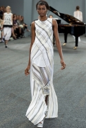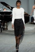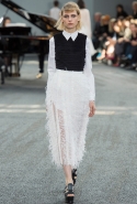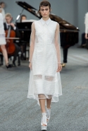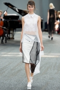 "Самой большой новостью было отсутствие цвета; это была полностью монохромная коллекция, свежая и по-парижски шикарная. В ней однозначно присутствовал элемент кутюра: страусиные перья были пришиты к плиссированным миди-юбкам, петушиные перья к свитшоту, который был украшен еще больше — с помощью "клумбы" из сатиновых лепестков. Кроме того, в создании нескольких платьев был использован конский волос, а другие были сшиты из 30 метров потертой органзы". Сара Харрис, Vogue.co.uk