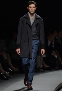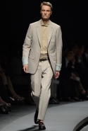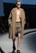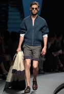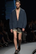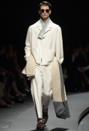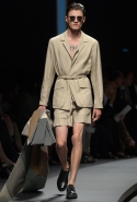 Начать показ Пилати решил с классических мужских костюмов: узкий однобортный или двубортный пиджак и брюки из той же ткани с едва заметными узорами. Дальше были шорты, рубашки и объемные куртки в стиле итальянской Ривьеры 1960-х годов. Ох уж этот ленивый и расслабленный стиль — белые костюмы, жакеты-сафари с поясом и шорты бермуды, а вдобавок, конечно, короткие ботинки на голую ногу. Силуэты и цвета — подлинный Пилати, и дому Ermenegildo Zegna его стиль очень идет. Эдакая "дольче вита", как в фильмах Феллини и Висконти, только, увы, без Эннио Морриконе. Вместо него, по сценарию Пилати, должны звучать индастриал и хаус.