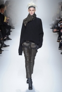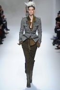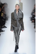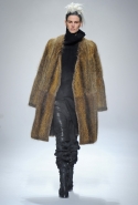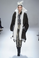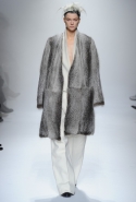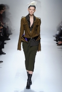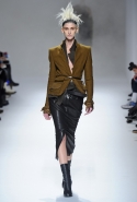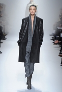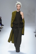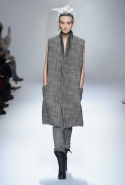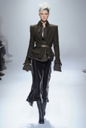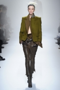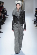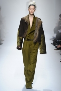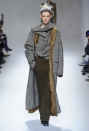 И на этот раз нам показали все, за что мы любим Хайдера, — прекрасные драпировки, узкие силуэты с перетянутой талией, сложное совмещение фактур и цветов, асимметрию. Например, в одном луке он соединил драповый жакет кофейного цвета, перетянутый ремнем из кожи рептилии, под ним — жакет из тонкой шерсти сложного серо-коричневого оттенка с бархатным воротником, велюровую юбку цвета графита и черные кожаные сапоги на толстой подошве. Из-под эффектной землисто-коричневой парки, подбитой белым мехом, торчали манжеты рубашки цвета "серебряный металлик", а из-под горчичного жакета — лацканы оттенка молочного шоколада и коричневые кожаные брюки с блестящей поверхностью и молниями внизу. У любого другого это выглядело бы довольно дико, но у Аккермана — просто виртуозно.