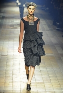 Коллекция Lanvin осень-зима 2013/14 получилась совершенно сумасшедшей. Здесь смешалось все — классические наряды ladylike, хип-хоперские цепи с подвесками love, happy, help и hot, розы, бабочки и прочие насекомые, прозрачные кружева и мех в стиле кокоток и суровая черная кожа. Изящный эльбазовский гламур на этот раз выглядел так, словно его пропустили через мясорубку, а потом взбили в миксере.