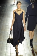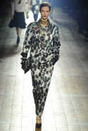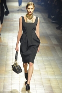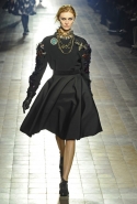 Ну и, конечно, бижутерия — она у Lanvin всегда запоминающаяся, но в этот раз особенно. Можно только вообразить, как часто осенью мы будем видеть эти цепи с love и hot, эти ремни с увесистыми пряжками, на которых стразами выложено help, и особенно броши в виде огромных мух — мечту безумного энтомолога. А еще короны, словно вырезанные из фольги.