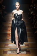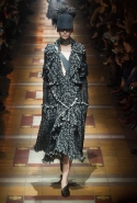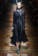 Основой коллекции стали три "э": экстравагантность, экстремальность и эксперименты. И пусть на английском это Triple-X звучит куда более впечатляюще, зрители, говорящие на любом языке, оценят и почувствуют каждое из этих трех слов — и общую прекрасную картину, в которую они складываются. Разрезающие темноту прожекторы и напольные лампы превратили подиум в съемочную площадку, придали всей коллекции особенное, кинематографичное настроение. Атласные поблескивающие платья, переливающиеся в потоках света струящиеся складки, нежные и пышные меха, текучая бахрома, объемные и живые наряды, собранные из твидовых оборок, — лица моделей скрыты в тени козырьков кепи с помпонами и огромных шляп, оставляя таким образом в центре внимания только главных героев этого представления. Альбер Эльбаз возвращает зрителям то давно забытое ощущение волшебства, когда мода была не просто ready-to-wear или haute couture, не просто поводом для того, чтобы показать себя в хрониках street style или посмотреть на сидящего в первом ряду Канье Уэста, а чем-то большим.