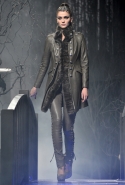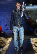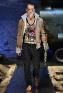 Герой этой коллекции Philipp Plein — бесстрашный солдат, который всегда остается смелым и готов к экспериментам в одежде. Пример — футболки и толстовки с персонажами из мультфильмов: моряком Попаем и провокационными "pin-up-бомбардировщицами", о которых мечтали солдаты в 1940-х. Его образ требует внимания к деталям — ошейникам, украшенным заклепками и плавно переходящими на спину в огромные кресты и черепа, заплаткам из сафьяновой кожи на нейлоновых парках монтгомери или капюшонах из овчины с отделкой из меха лисы. Впрочем, мы уверены, что ни герой, ни героиня Philipp Plein незамеченными не останутся, и коллекциями осень-зима 2013/14 дизайнер еще раз это доказал.
