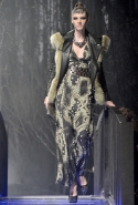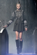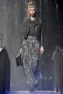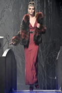 Показ женской коллекции Philipp Plein, казалось, проходил не на подиуме, а в самом настоящем сказочном лесу: модели шли по железному мосту, словно переходя через реку, а фоном стали ряды тонких черных деревьев с голыми ветками. Героиня Philipp Plein следующей осени по-прежнему сильна, умна и сексуальна. В ее гардеробе появятся шуба из серебристого меха с рукавами, усыпанными кристаллами, сверкающие лодочки, корсетное платье в пол с тяжелым, даже агрессивным ремнем и бархатное платье с длинной молнией спереди. Если она вдруг соберется замуж, наденет облегающее белоснежное платье с жаккардовым кейпом, отороченным мехом белой лисы.