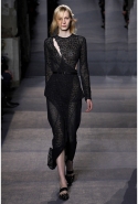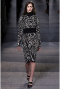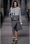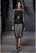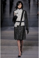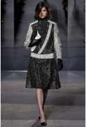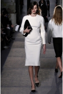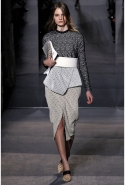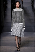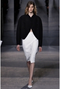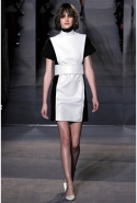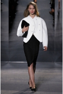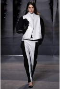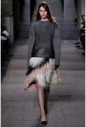 С цветовым решением коллекции случился настоящий парадокс. Даже контрастные черно-белые сочетания — также в коллекции использовался серовато-бежевый, бледно-мятный и стальной серый — смотрелись не "жестко", а очень изящно и деликатно. Секрет — опять-таки мягкие силуэты и текстуры, сглаживающие даже самые графичные цветовые комбинации. В черно-белом ансамбле из футуристичного свитера и юбки из перьев дизайнеры использовали принцип деграде — переход одного цвета в другой. Многим покажется, что нежность и мягкость — слова не из лексикона современной сверхскоростной, сверхпрагматичной, сверхтехнологичной реальности. Ошибка. Все зависит от того, кто и как их употребляет.