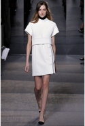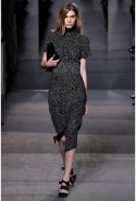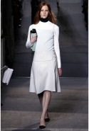 Начнем с силуэтов — шестидесятнические, закругленные линии плеч и рукавов, мягкие переходы от узкого к широкому, приталенность. Эдакое новое прочтение Кристобаля Баленсиаги, но с явным упрощением формы в сторону удобства, комфорта, свободы движений. То, что это мода для жизни, а не для подиума, подчеркивал однозначный выбор дизайнеров в пользу обуви на маленьком каблуке — все модели были дополнены изящными остроносыми лодочками.