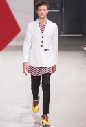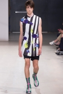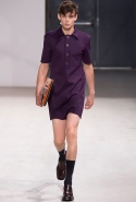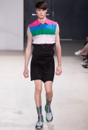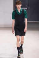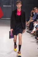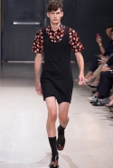 Натуральное против искусственного, искренность против фальши. Это — девизы коллекции, которые можно по-разному трактовать. В буквальном смысле речь идет о сочетании тканей — синтетических и натуральных (правда, последних, по словам очевидца Бланкса, на подиуме почти не наблюдалось). С другой стороны, эта коллекция — пропаганда честности: если тебе нравится носить юбки, носи на здоровье, но не бойся об этом открыто заявить. Да и речь идет не только о юбках, но и о джемперах с психоделичным принтом, странных резиновых сапогах, ярких удлиненных майках и абсолютно женоподобных топах (те, что в диагональную розово-коричневую полоску, уж очень напоминают о дебютной коллекции Рафа Симонса в Dior).
