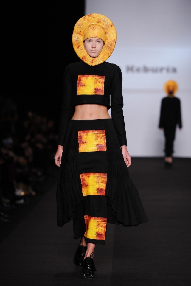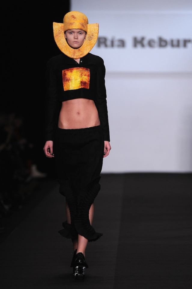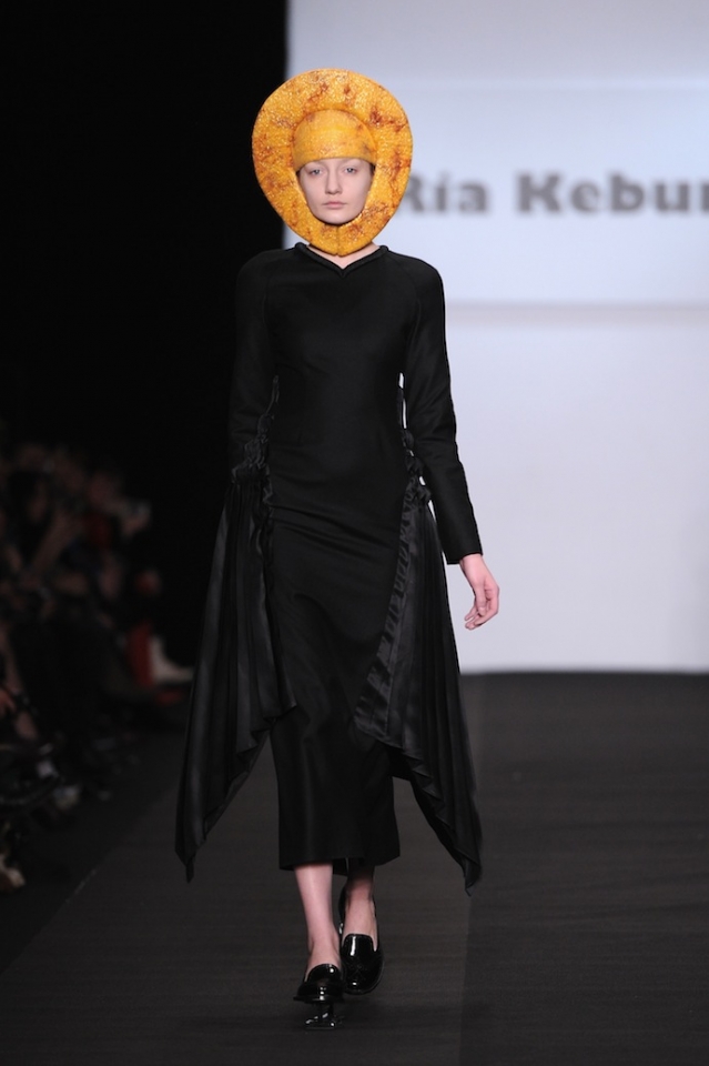 Субботним вечером в рамках недели моды в Москве состоялся показ коллекции осень-зима 2013/14 марки Ria Keburia. Молодой дизайнер из Грузии Рия Кебурия, лишь год назад представившая свою первую коллекцию в Киеве, сейчас старается привлечь внимание и столичной публики. Строгие силуэты, созданные под влиянием японской культуры, но вместе с тем пропитанные грузинским духом, не оставили никого равнодушными.