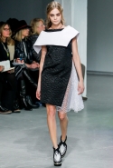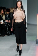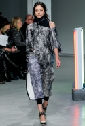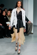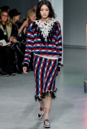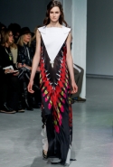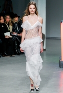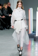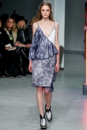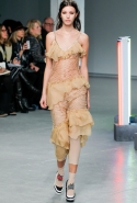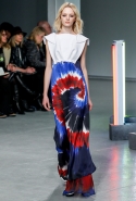 Под конец шоу дуэт Rodarte вновь продемонстрировал свою любовь к многослойности и гранжево — панковской эксцентрике начала 1990-х. Легкие платья на одно плечо с "застиранным" серо-синим принтом поверх боди, кожаные байкерские куртки, завязывающиеся на груди топы без рукавов, широкие балахоны и спадающие на середину бедра штаны. Во всем этом чувствовалась настоящая романтика молодости. Сестры Малливи вновь напомнили нам, что романтизм — явление, относящееся менее всего к эстетике, а более всего к внутреннему состоянию, явление, которое определяется игрой воображения, бунтарством и борьбой за свободу самовыражения.