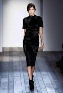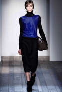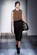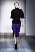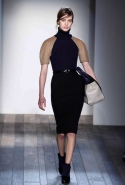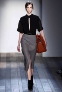 Но и оставаясь верной своей манере, Виктория Бекхэм старается быть разнообразной и интересной. В этой коллекции, например, она обратилась к мужскому гардеробу, позаимствовав оттуда крупную и узкую клетку в сине-серой гамме, шерстяной фетр, топы, скроенные на манер мужских рубашек с короткими рукавами, и спортивные водолазки. В попытке придать своему любимому классическому силуэту 1950-х годов большую непосредственность, расслабленность и комфорт — то есть сделать его более созвучным современности, она "разрезала" спереди, а иногда и сбоку, узкие юбки-миди, скомбинировав их с чувственными топами с глубоким разрезом в декольте. Оригинальная и свежая идея — рукава с круглой линией плеч — преображает классические узкие платья и ансамбли из юбок с топами и блузками в актуальный динамичный образ с футуристической ноткой.