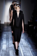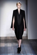 Вечерний выход, по мнению Виктории, должен разбудить в каждой женщине мужчину, ведь андрогинность так сексуальна. Очередная интерпретация темы смокинга стала одним из самых сильных моментов этой коллекции — скорее всего, именно эти модели станут бестселлером линии Victoria Beckham в следующем сезоне. Удлиненный смокинг с укороченными брюками, платье-смокинг с прорезями и накидкой вместо классической спинки или укороченный пиджак, надетый на голое тело, в сочетании с юбкой из пони-скин, возможно, когда-нибудь станут американской классикой черного. Не мудрствуя лукаво, Виктория сделала еще один шаг к тому, чтобы считаться дизайнером, а не знаменитостью, создающей коллекции одежды.