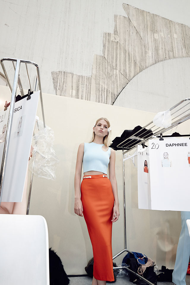Скажу честно, я не изучал работы Николы для Mugler, работая над своей коллекцией. Мне нужен был новый старт, я не хотел отсылок и сравнений с предыдущими дизайнерами. Это должен был быть чистый Mugler, но с моей подписью, в моем собственном стиле — жесткие, четкие силуэты, "сильные" платья, сексуальность. Такой и получилась коллекция. Я добавил немного цвета, оранжевый и бледно-голубой, добавил даже принт. Это должно было стать чем-то совершенно самодостаточным, независимым — началась новая эпоха в доме Mugler.
