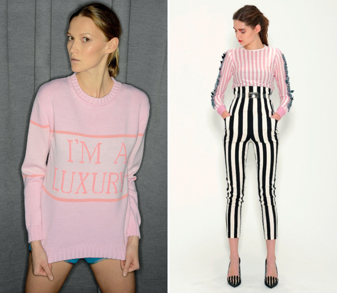 На этот сезон я уже приобрела пару полосатых брюк с высокой талией от Toga. Буду носить их с низкими каблуками, белой футболкой и мотоциклетным жилетом. Хочу купить черные кожаные брюки Whistles — еще одна хорошая инвестиция! Для создания дневных образов я выберу джемпер Walk of Shame с надписью I'm a Luxury Sweater — очень веселая вещь! И не забуду о нашей новой марке Hydes — у них отличные солнцезащитные очки.