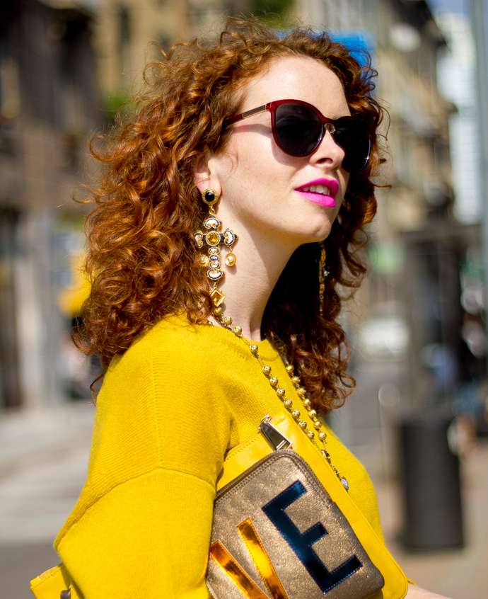Кармел Уолш в свитере JIL SANDER, с клатчем LANVIN и JIL SANDER