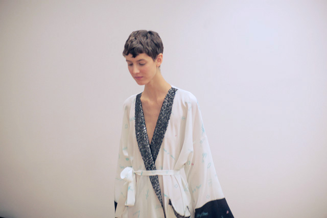 Микс, под который модели расхаживают по залу прямо в папильотках, начинается с криков Марии Шараповой. Как объясняет Андрей Артемов, дизайнер марки, тема показа — порнофильмы 1970-х, а в звуках, которые Маша издает, когда играет в теннис, определенно есть нечто эротическое. Алексей Киселев перемешал их с песнями Deep Vally, Future Brown и Сержа Генсбура и получил отличный саундтрек. Самой команде музыка определенно нравится: взять хотя бы моделей, которые ходят под нее танцуя.