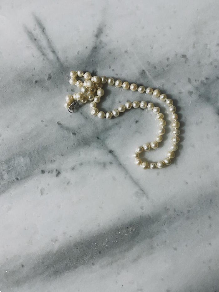 Копеечные жемчужные бусы, купленные на Гавайях. Люблю носить их c футболкой, толстовкой и классическими джинсами-варенками.