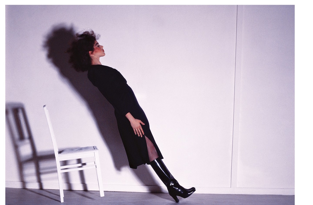 Ги Бурден часто прибегал к уловкам, придуманным им самим. Например, чтобы зафиксировать момент падения для этого кадра, он установил стул в диагональном положении, прикрепив задние ножки к полу. Модель облокотилась на выступающую из стены планку.