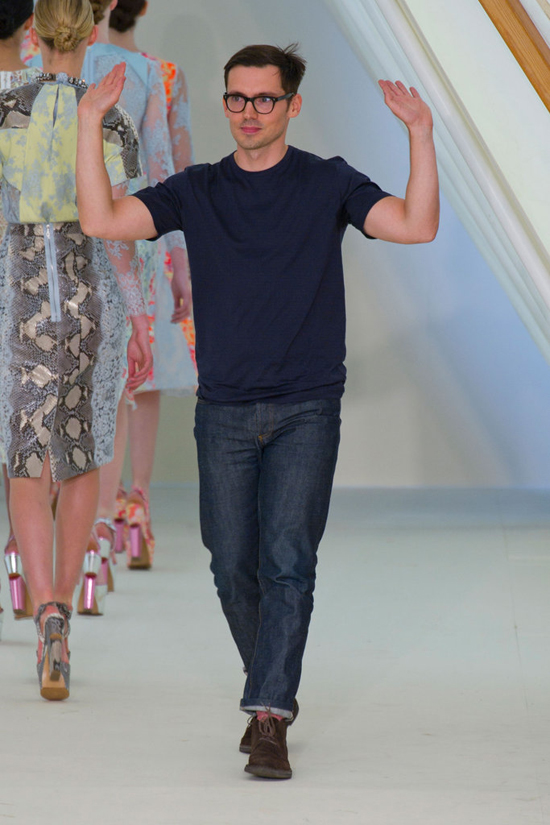 Вчерашний показ весенне-летней коллекции Erdem удивил насыщенностью цветовой палитры и спектром использованных принтов. Ткань конфетных оттенков желтого, голубого, розового дизайнер марки Эрдем Моралиоглу покрыл ярко-оранжевой и красной глазурью, и на нежных платьях-футлярах, кружевном плаще и брючных комплектах расцвели цветочные узоры. Длинную юбку с высоким разрезом, короткий прозрачный топ и юбку из шифона он посыпал марципаном, который лег на ткани мелким горошком. Нашлось место даже для кожи питона: ее дизайнер геометричными полосками и четырехугольниками вместе с голубым кружевом поместил на легкие пальто и платья в стиле пэчворк.