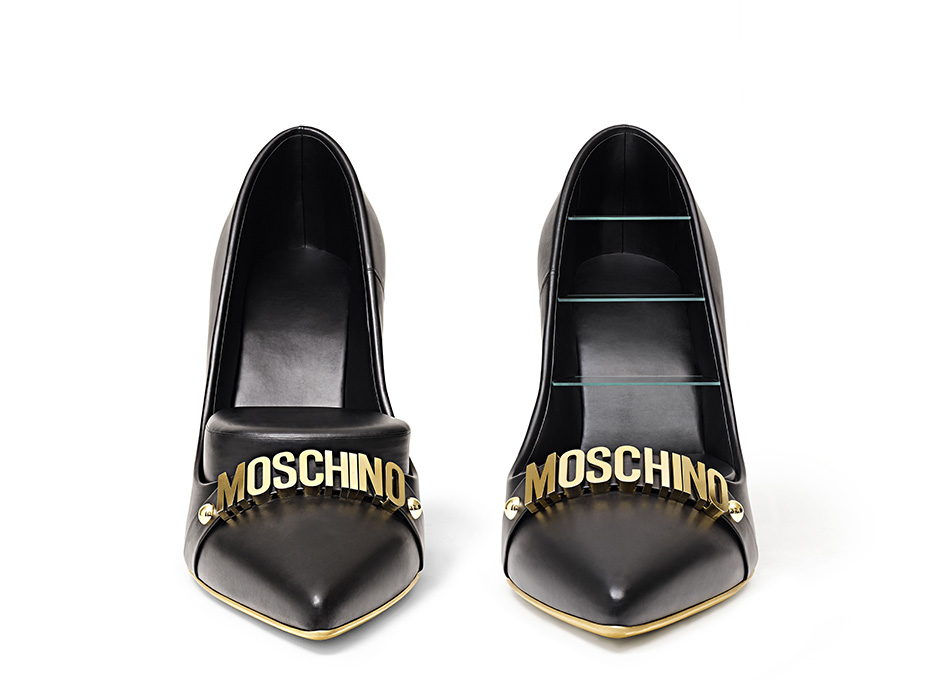 В капсульную коллекцию мебели вошли диван в виде красных губ, шкаф в виде байкерской сумки Moschino, а также книжные полки и кресло в виде туфли.