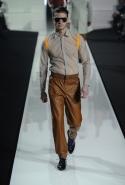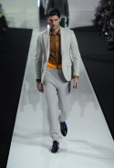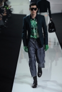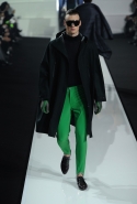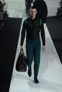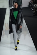 Новая коллекция мужской одежды Dirk Bikkembergs сезона осень-зима 2013 строится на сочетании эластичных и натуральных тканей, спортивного и городского стилей, практичности и элегантности. Стремление к комфорту сделало эту коллекцию функциональной и удобной. Основные материалы, использованные в коллекции — натуральная шерсть, каракуль, телячья кожа, бархат, прозрачный нейлон. Цветовая палитра — холодный серый, ярко-зеленый, желтый, бежевый, изумрудно-зеленый и лиловый