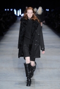 Главными темами первой мужской коллекции Андреаса Мельбостада стал стиль милитари и рокерская эстетика. Резкие силуэты, медали и знаки отличия на груди, узкие, сшитые будто по точным меркам выходящих моделей куртки и пиджаки — как военные мундиры, в таких невозможно ходить, не обладая по-настоящему офицерской выправкой. Обувь тоже с военным уклоном — разумеется, без кирзовых сапог и портянок, это скорее отсылка к военной форме лихих гусаров с картинок из учебников истории или фантастических книг. Модели Diesel Black Gold носят ботинки-челси с белстящими металлическими полосами на носах и каблуках. А за рок отвечают застежки-молнии и металлизированная кожа, блестящая серебром — лаковым и серебристым стал даже классический деним Diesel Black Gold.