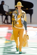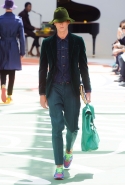 Отдельного внимания заслуживают сумки и папки, которые несут в руках выходящие на подиум мужчины-странники. Коллекция не зря называется Book Covers & Bruce Chatwin — в принты превратились иллюстрации и заглавия со старинных книжных обложек английских издательских домов. Сперва их переработали художники и дизайнеры британского модного дома, а потом они были перенесены на кашемир, хлопок и кожу. История очень напоминает легенду круизной коллекции Burberry, она тоже была вдохновлена винтажными обложками и иллюстрациями, но по настроению получилась скорее для тех, кто мечтает о путешествиях, сидя с книжкой дома, этаких книжных девочек, но никак не путешественниц. Хотя, в конце концов, путешествие духа или ночной полет над вересковыми пустошами — тоже, так или иначе, путешествие, пусть и своеобразное. Но все же быть босоногим Гекльберри Финном или Брюсом Чатвином намного интересней.