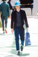Писатель, в России известный больше как автор небольшого романа "Утц" о природе коллекционирования и коллекционерах, недавно изданного на русский издательством Ad Marginem, никогда не был автором для широкого круга читателей. И оценили его многие уже после смерти, увлекшись не столько книгами, сколько захватывающей биографией. Он, действительно, был знатоком искусства, не последним человеком в арт-мире, самым молодым начальником отдела импрессионизма в аукционном доме "Сотбис", другом всех богемных и творческих личностей своего времени — но в первую очередь все-таки путешественником и собирателем историй, которые он и искал по всему миру: в Африке, Афганистане, Китае и даже СССР. Поэтому и коллекция Кристофера Бэйли, посвященная Чатвину, получилась для таких же, как он, путешественников — людей стильных и образованных, умеющих располагать к себе других и всегда ко всему любопытных. Ну и, конечно же, не лишенных чувства юмора, потому что укороченные брюки со стрелками соседствуют в коллекции с пестрыми кроссовками, мягкие пиджаки надеваются на короткие джинсовые куртки-рубашки, тренчи оказываются длиной с пиджак, куртки обшиты карманами так же обильно, как женские платья вышивкой, а венчают все это шляпы-панамки со слегка обвисшими, видавшими виды полями.