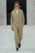 Ким Джонс не пытается превратить показ в красивую историю, сосредотачиваясь как раз на самой одежде, которую можно, нужно и очень хочется носить — и в которой хочется видеть окружающих. Напрямую он позаимствовал разве что сочный цвет фуксии, который сразу вызывает ассоциации с Болливудом. Вот только вместо ярких нарядных сари им раскрашены воротнички рубашек, куртка-бомбер и один комбинезон. В паре с фуксией идет радостный ярко-синий, остальные цвета куда спокойнее: одну из ведущих ролей играет терракотовый, не отстают от него песочный, черный и разной насыщенности оттенки серого. Напоминают об индийской национальной одежде и пальто-халаты, одно из которых и открывает показ: если мысленно дорисовать мужчине-модели нужных объемов бороду и аккуратную чалму, получим идеальную звезду мужского street style родом из Индии.