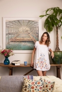Коллекции Тори Берч — это не только полет творческой фантазии дизайнера, но и тщательно продуманная с точки зрения коммерции одежда. Поэтому каждую вещь с лейблом Tory Burch легко представить в повседневном гардеробе современной девушки, и в этом один из главных ее козырей. Поддерживая идею «близости к народу», дизайнер решила примерить туники из летней коллекции на 12-ти вполне реальных женщинах. Сабина Гетти (владелица и дизайнер ювелирной линии Sabine G), Джемайма Джонс (ведет колонку о еде в лондонском журнале Evening Standard Magazine и планирует открыть собственную закусочную), Матильда Фюрстенберг-Борромео (коннозаводчик, принадлежит к старинному аристократическому роду), Анушка Беквит (фотограф, владелица фотогалереи в Париже), Зита Дотевиль (бельгийская модель), Лор де Клермон-Тоннер (французская актриса, режиссер, продюсер), Анина Пфуль (дизайнер по костюмам), Маргарита Пури-Негри (координатор глобального бизнес-развития в LuxHub), Алессандра Орси (глобальный креативный директор Yoox-Net-a-Porter Group в Милане), Домицилла Бертуси Дотти (иллюстратор детских книг и владелица линии детских товаров Mimmi + Mommi), Мария Луиза Скио (генеральный директор группы отелей Pellicano Hotels) и принцесса Мария Аннунсиата Лихтенштейн — каждая из них успешна в своей области: коммерция, мода, кинематограф, искусство и т.д. Фотографы Биллал Тарайт и Гвидо Тарони постарались через снимки передать часть реальной жизни девушек в домашних интерьерах, передавая их уверенность, утонченность и элегантность. В натуральном антураже туники и эспадрильи Tory Burch смотрятся не только гармонично, но и крайне привлекательно.