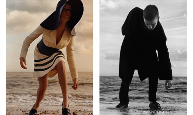 Желтоватое небо, которое бывает только утром на северном море, огромная шляпа с полями и странная поза моделей — такой живой и необычной получилась первая картинка рекламной кампании J.W. Anderson весна 2015. Фотографом новой съемки выступил Джейми Хоксворт, а стиль взял на себя Бенджамин Бруно. Пока что из всей кампании нам доступны только две фотографии — мужчины и женщины, выходящих из волн холодного английского моря бок о бок. По словам самого Андерсона, идея была в том, чтобы герои выглядели как "морские чудовища", поднимающиеся с поверхности воды. Справедливости ради стоит отметить, что в одежде J.W. Anderson выглядеть как монстр трудно, но, судя по первым кадрам, модели действительно старались. Получилось у них или нет, узнаем, как только фотосъемка появится полностью.