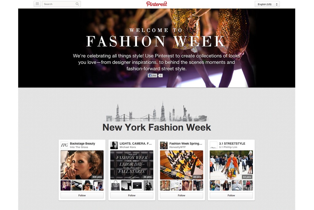 Сегодня газета Women's Wear Daily сообщила о том, что социальная сеть Pinterest впервые станет одним из официальных каналов по освещению грядущих недель моды в Нью-Йорке, Лондоне, Милане и Париже. Следить за событиями можно будет в специальном разделе по адресу pinterest.com/fashionweek, к которому уже присоединились дизайнеры, журналисты, блогеры — Michael Kors, ELLE, Garance Doré, Huffington Post Style, Man Repeller, Nordstrom, Oscar de la Renta, 3.1 Phillip Lim, PopSugar, Refinery29, Style.com и Song of Style.