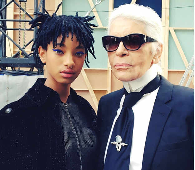 Уиллоу Смит познакомилась с Карлом Лагерфельдом в 2014 году, когда креативный директор Chanel снимал юную певицу для V Magazine. Вчера Уиллоу присутствовала на показе Chanel в Париже, а сразу после завершения дефиле было объявлено, что Уиллоу стала новым амбассадором французского модного дома.