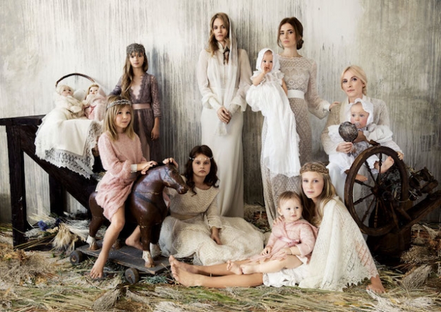 Темой съемки стала жизнь семьи в дореволюционной России и присущая ей православная обрядность. Стилист Катя Мухина выделила главные события верующей аристократии тех времен — крестины и венчание. Для этих торжественных моментов она и одевала героев. Наряды пришлось выбирать и для себя — Катя и ее дочь Маша тоже участвовали в съемке.