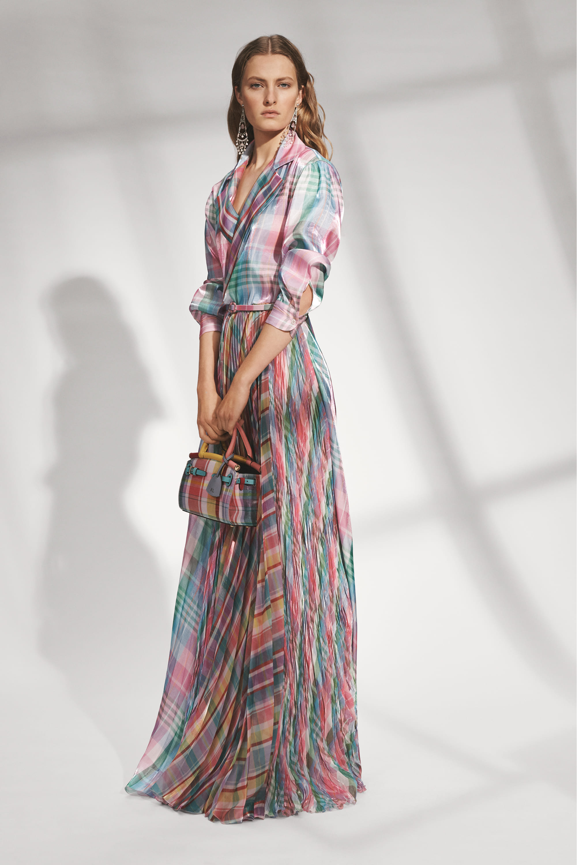 В нескольких изделиях из капсульной коллекции используется ткань мадрас. Впервые эту материю изготовили в индийском городе Мадрасе (сейчас Ченнаи) в период английской колонизации. Индусам удалось добиться невероятной легкости материала, в котором комфортно в жарком климате. Позже мода на мадрас распространилась в Англии, а затем и по всему миру. Представители американской Лиги плюща в 1960-х считали за правило иметь в своем гардеробе одну-две вещи из мадраса. Традиционно такая ткань изготавливается из хлопка выраженной текстуры с принтом клетка. В капсульной коллекции Ralph Lauren из мадраса в пастельных оттенках сделана рубашка Hannah и платье Devin, которое можно носить как днем, так и вечером, а также широкие брюки Brenda. Из яркого мадраса сшиты юбка Kimberley и рубашка. Кстати, в юбке такого же кроя Дженнифер Лопес появилась на церемонии CFDA Awards в 2019 году.