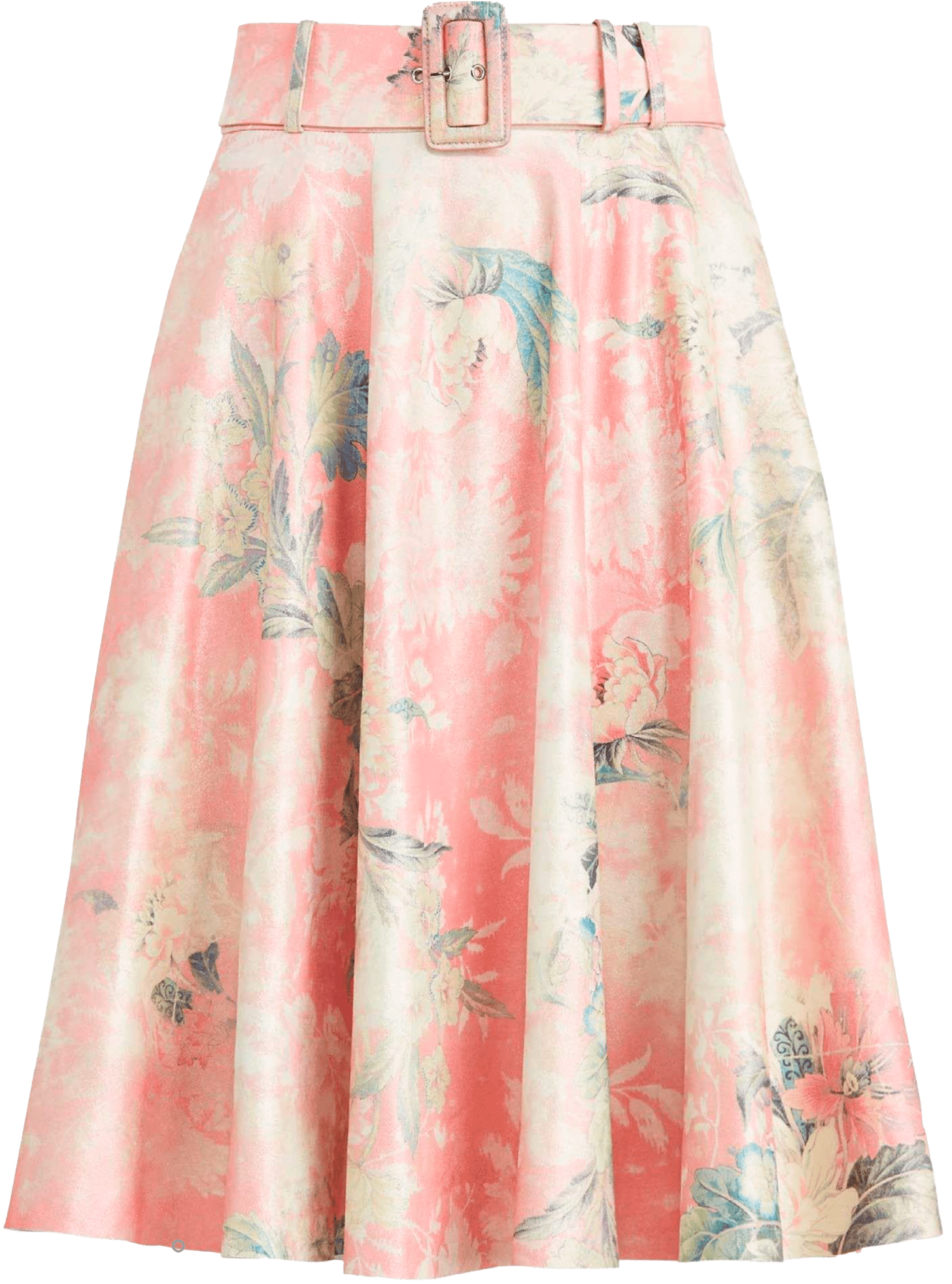 Юбка А-силуэта Madelyn из замши обработана специальным покрытием, которое придает материалу легкое мерцание. Цветочный принт вдохновлен шелковыми обоями с поблескивающим эффектом. Пиджак Yvette Floral также выполнен из замши из кожи ягненка, на поверхность которой нанесены микропайетки, придающие блеск. Принт вдохновлен винтажной фотографией букета цветов. Он был нанесен на ткань на итальянской фабрике около озера Комо. Перламутровые пуговицы и фирменная жаккардовая подкладка дополняют стиль Ralph Lauren.
